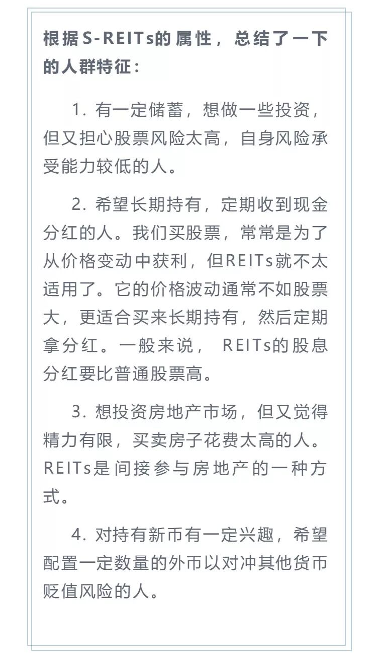 相比于其他的某些基金产品、动辄几十万的起购的最低买入门槛,REITs组合门槛低,只需2万5千新币起购。