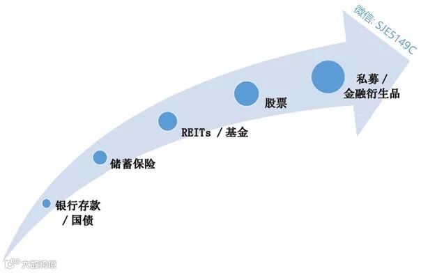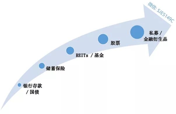 为了便于大家理解REITs的风险大小,这里做了一个简略的比较图,风险随箭头方向依次递增(注意:不能完全按照这个比较来判断风险大小,还需要考虑综合因素。)
