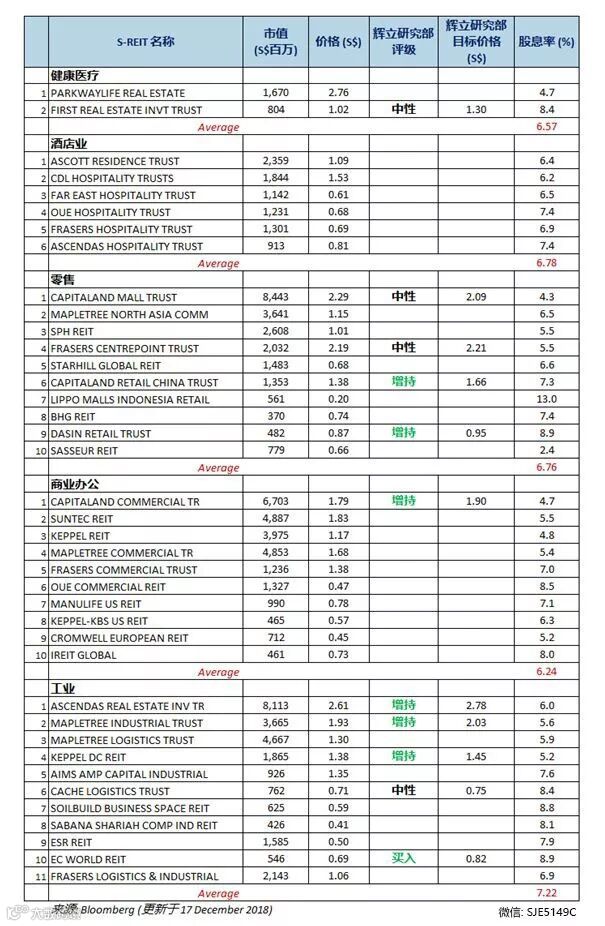 • 医疗REITs(如:ParkwayLife REIT , First REIT)