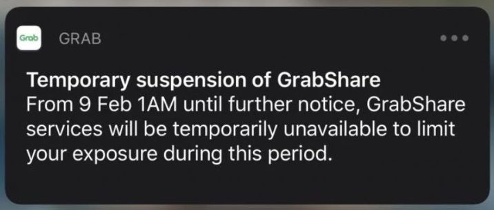 私召车公司Grab宣布在今天(2月9日)凌晨1时起暂停GrabShare拼车服务,直到另行通知。