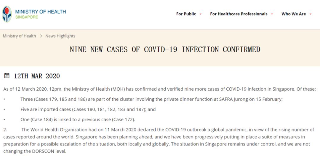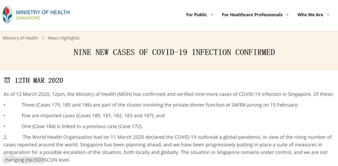 活动:3月9日入境新加坡,在鹰阁医院就医,和182例是一家人