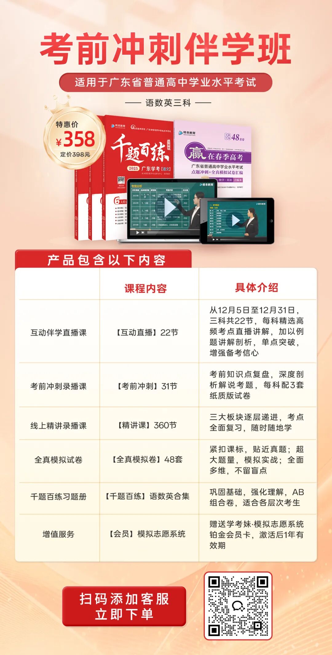 考前冲刺班学班 助力你考前冲刺复习 多项产品组合,加赠权益 满足不同阶段考生备考需求 赶紧点击扫码抢购👇👇👇