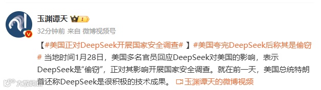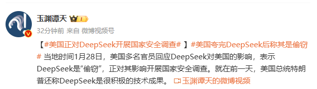 跨境人老刘当地时间1月28日,美国多名官员回应DeepSeek对美国的影响,表示DeepSeek是“偷窃”,正对其影响开展国家安全调查。就在前一天,美国总统特朗普还称DeepSeek是很积极的技术成果。