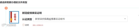 出证周期选择“立等”;点击“添加文件”选择新冠疫情事实性证明;认证类型选择新型冠状病毒疫情事实证明书,按要求上传佐证材料(PDF格式)。