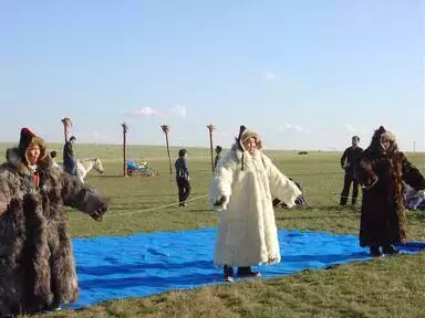 (这是第一次到海拉尔,在草原上偶遇的当地民族服装表演,看上去抗冻但不方便动吧)