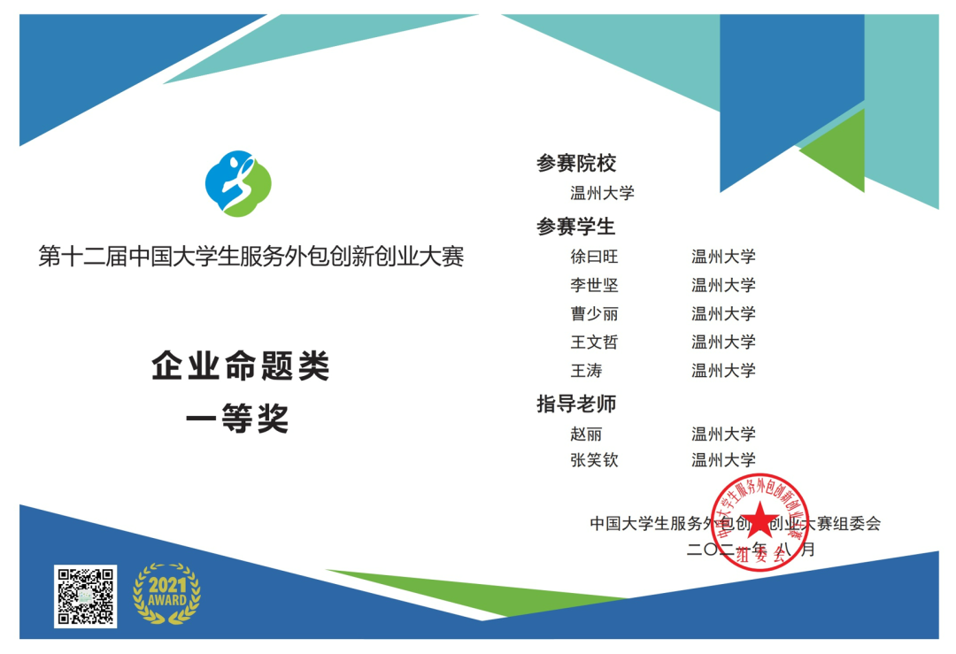 ● 中国大学生服务外包创新创业大赛 全国一等奖