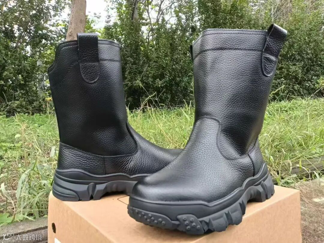 鞋面采用压花牛皮拼接,鞋总高27厘米,舒适耐折好打理;大张羊毛一体内里,保暖舒适,适合北方寒冷天气;鞋底为防滑耐磨橡胶大底。