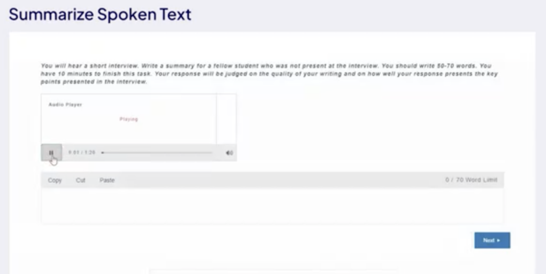 题型任务:听一段 60-90 秒的录音(比如 “环保访谈”),写一段 50-70 词的书面总结,考查听力概括与写作能力,和 SWT 类似但考 “听”。