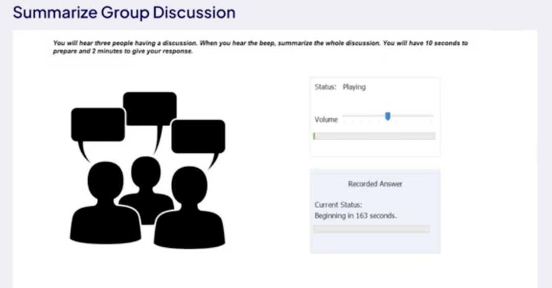 题型任务:听一段 3 分钟内的三人讨论,2 分钟内口头总结 “讨论主题、分歧点、结论”,考查听力概括与逻辑梳理能力。
