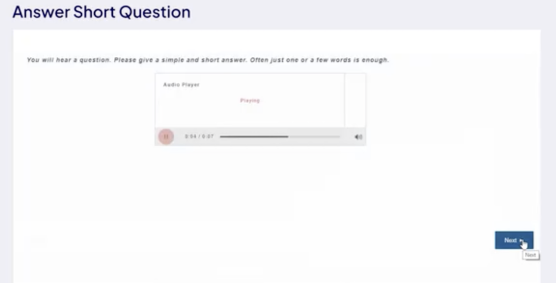 题型任务:听一个 3-9 秒的问题(比如 “What do you call a person who writes books?”),10 秒内用 1-3 个词回答,考查常识与听力反应。