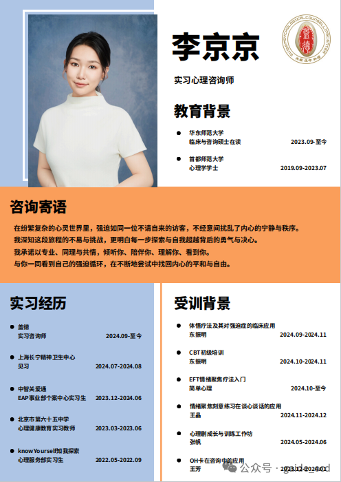 作为华东师范大学心理与认知科学学院指定的实习实践基地,东老师亦亲自培养优秀咨询师的后备力量,咨询老师如下: