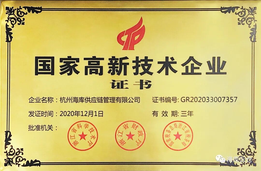 2020年 海库成为国家高新技术企业,牵手淘宝全球购,先后在杭州,义乌,温州设立淘宝全球购物官方保税仓库。