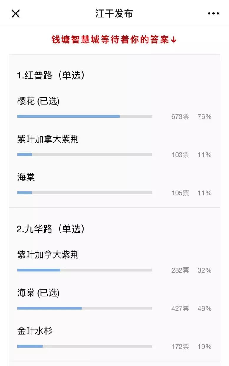 但是,最终结果是樱花,还是海棠、碧桃或者其他的花木,还要等投票结束才能最终确定。