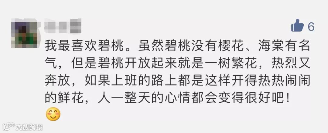 微信后台上,大家的留言充满了爱花,爱城,爱生活的细腻情感,大家的目光,也主要集中在樱花、海棠、碧桃这几种既能赏花,又能观叶的花木上。在这里,我们也放出几条粉丝的留言,让大家欣赏一下: