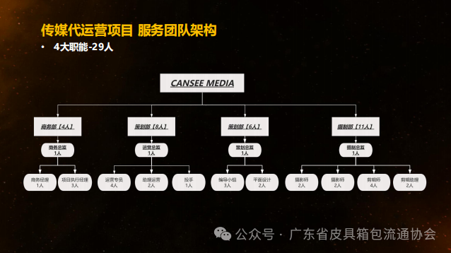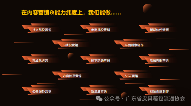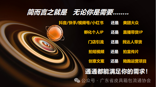 座谈会中,灿锌(cansee)集团董事长黎豪南介绍自身企业情况;运营总监李书宇分享新媒体转型运营企业优质案例,从新媒体运营角度出发,针对协会自身情况制定以协会为主体开展的营销策划,树立协会品牌旗帜,打造以“广东包包”抖音媒体为主的四大栏目,为自身会员企业乃至在整个皮具箱包行业赋能发展。