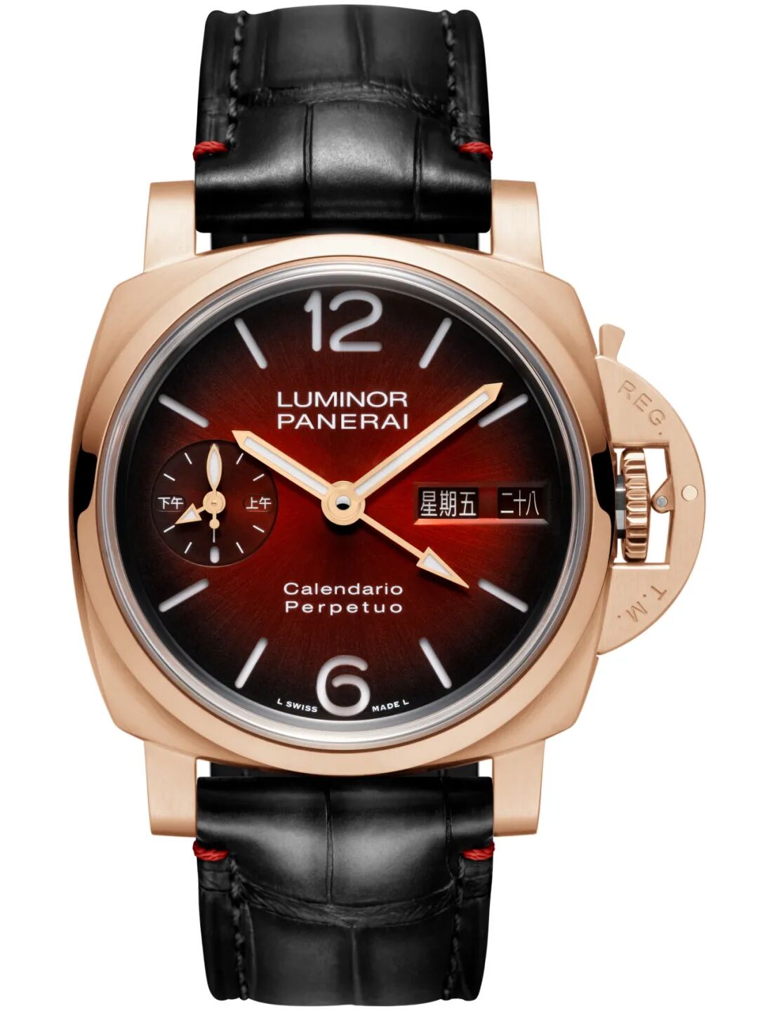 44毫米万年历两地时红金腕表PAM01688