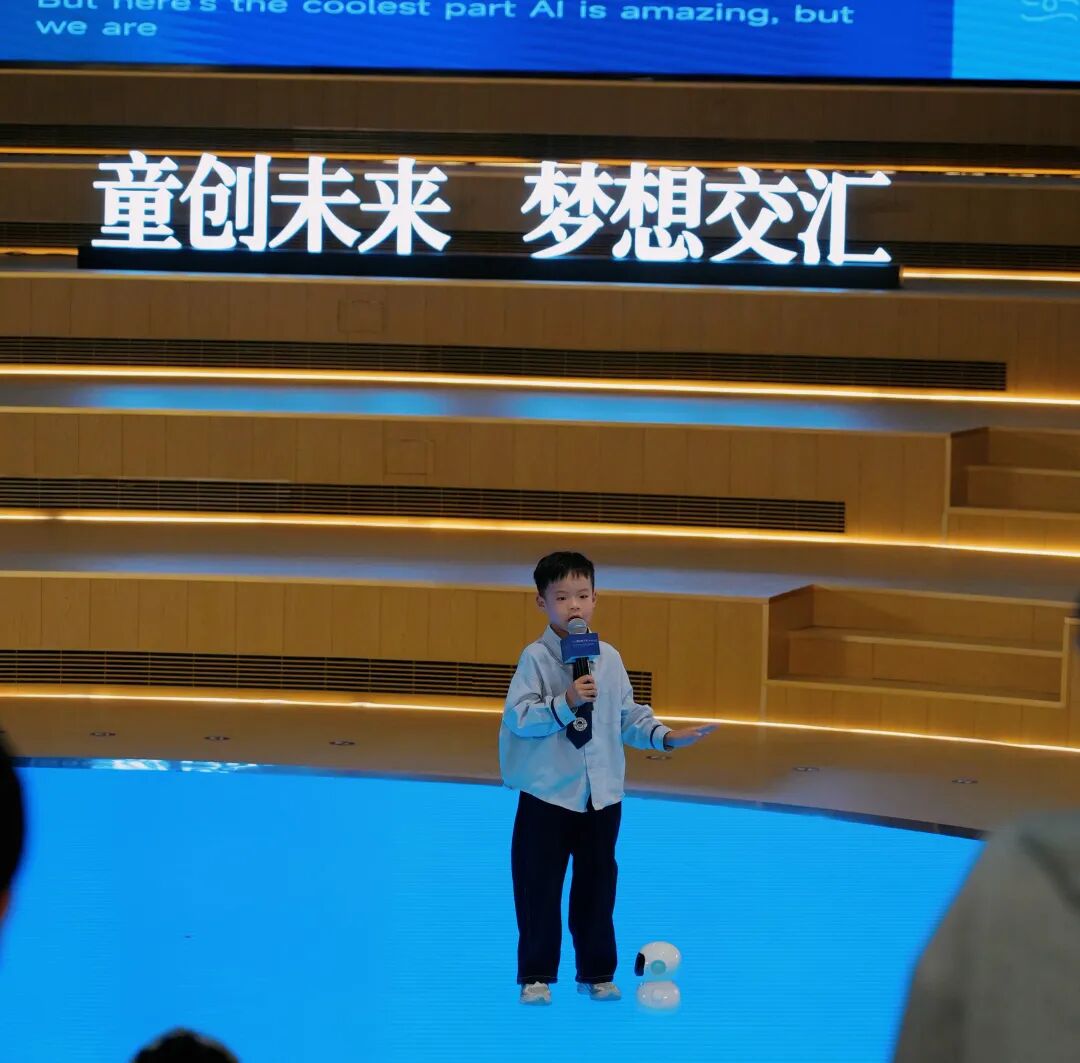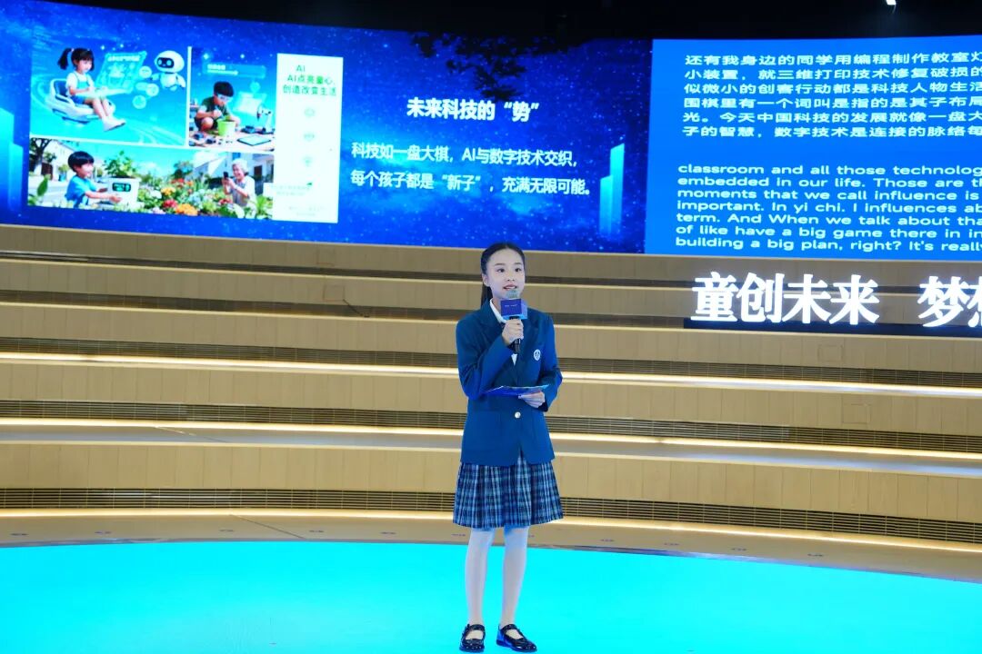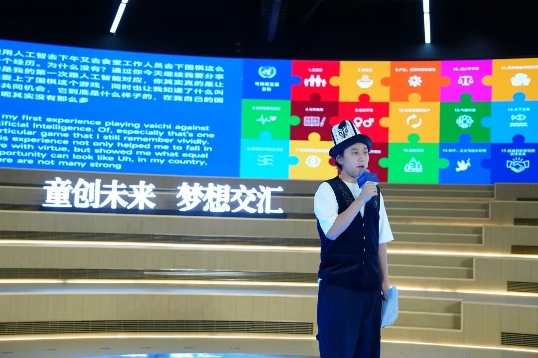 “智汇未来·童创无限”环节将活动推向高潮。中国小朋友余书畔在《AI and ME》中探讨人工智能与人类的协作共生。