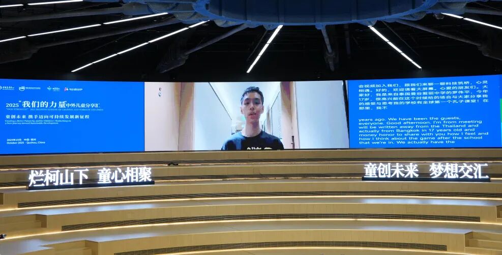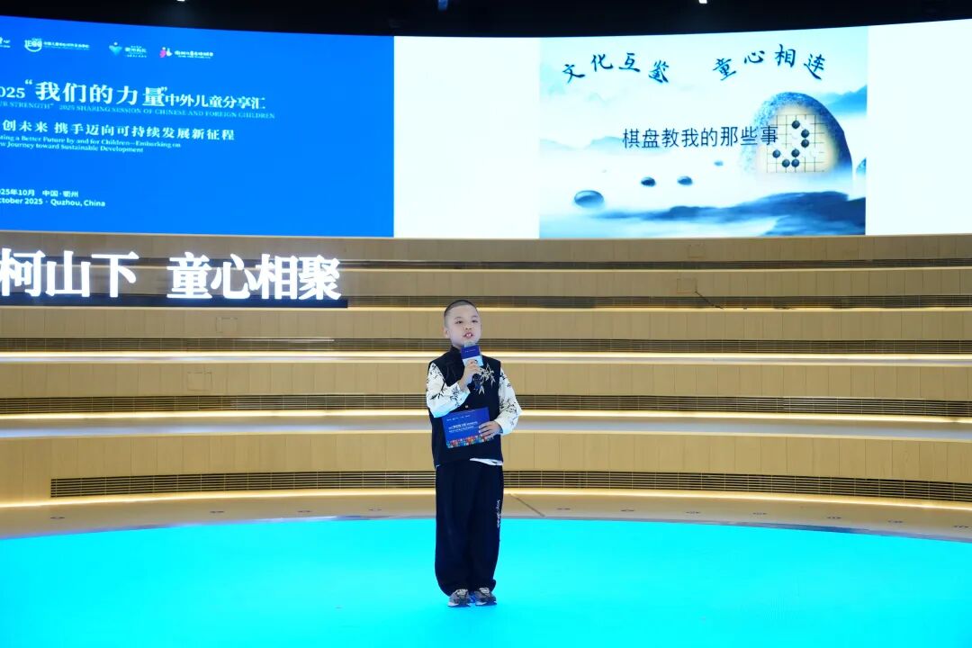 10月25日,由中国儿童中心、浙江省妇女联合会、衢州市人民政府联合主办的“我们的力量”中外儿童分享汇在衢州成功举行。来自中国、美国、加拿大、澳大利亚、捷克、智利、克罗地亚、吉尔吉斯斯坦、新加坡、泰国等国家和地区的百余名儿童代表,围绕文化、环保、科技等主题进行交流分享,共同向世界发出《童创未来,携手迈向可持续发展新征程》倡议,展现了少年儿童对全球可持续发展目标的深刻思考与积极行动。