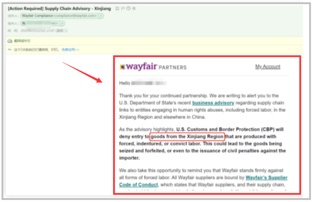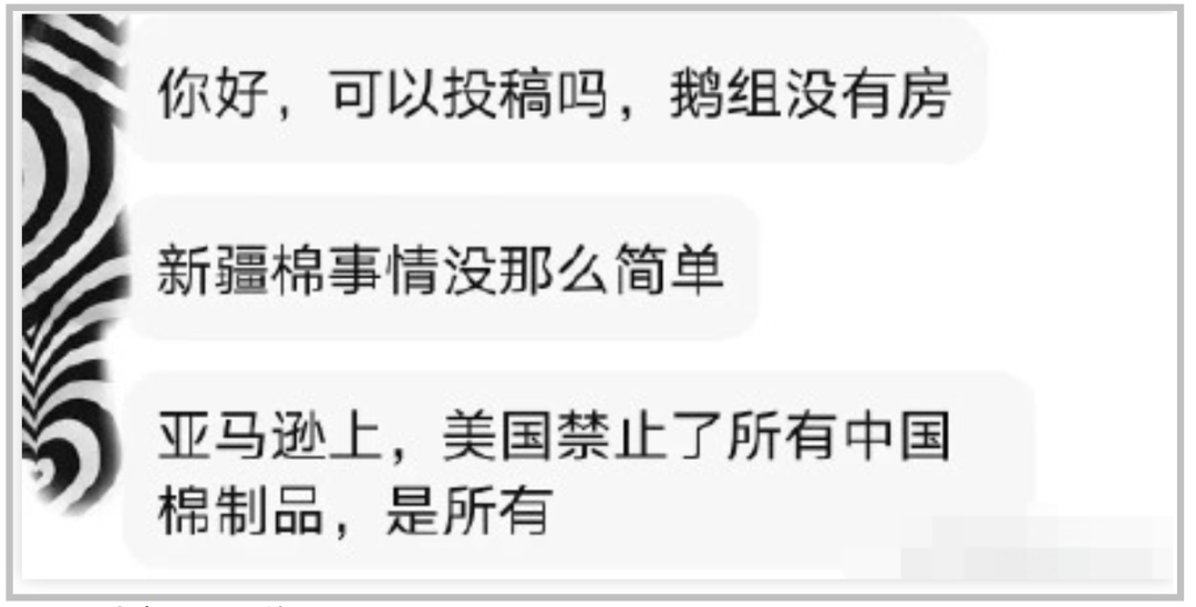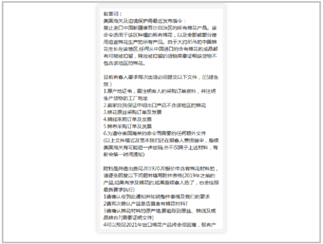 卖家自我保证说明出口产品不含该地区的棉花。 -