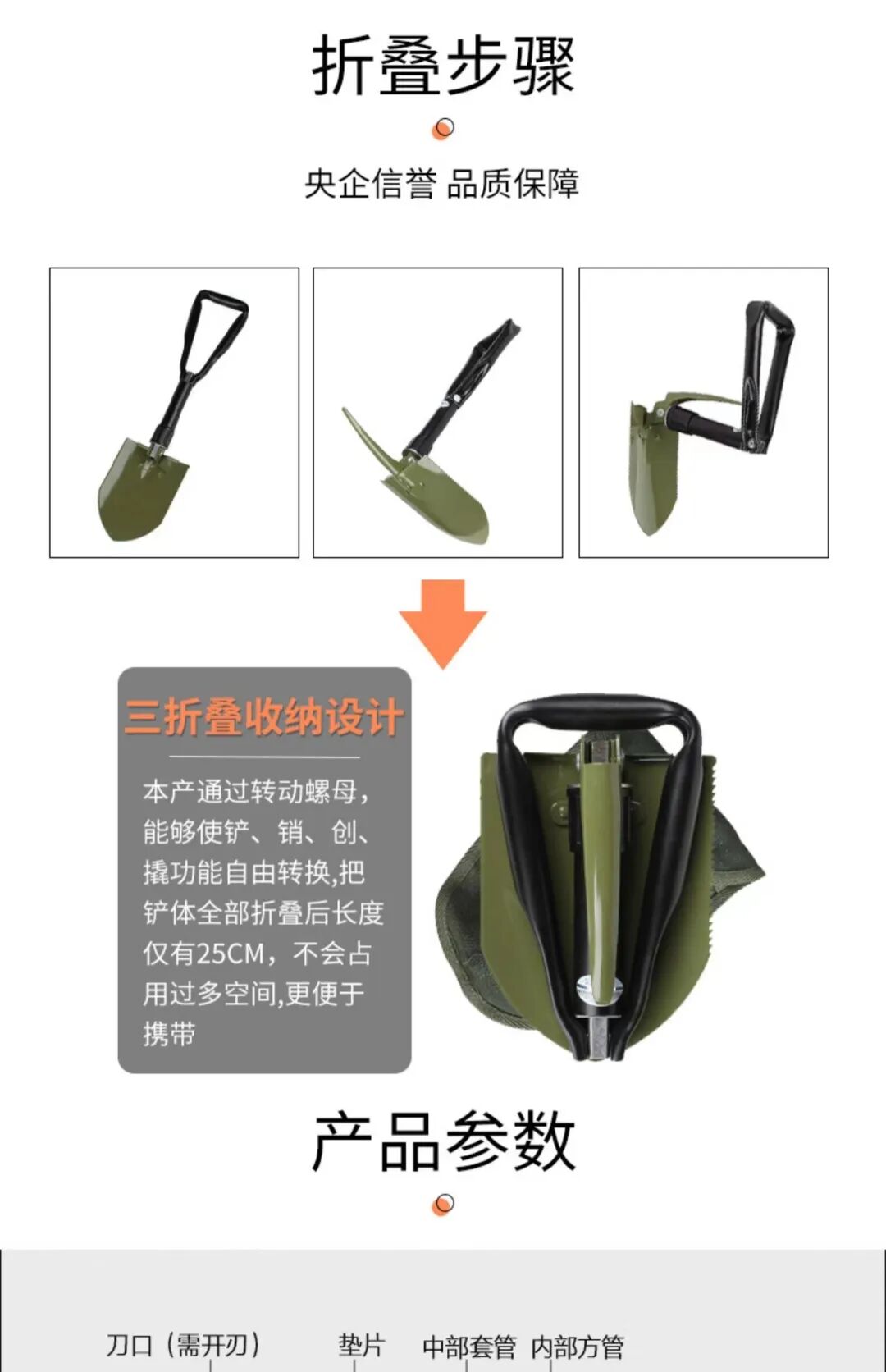 际约华品,沁凉穿搭 — 际华户外工兵铲6411多功能车载折叠锹户外野营铁锹铲子应急救援铲