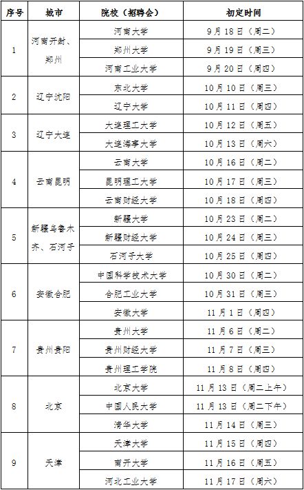 根据我市产业集聚发展需求,结合各地区、高校的人才供给结构和专业特色,形成以“双一流”高校为中心、覆盖地区其他高校的高学历人才引进模式,通过精准对接,强化引才效果,逐步开辟人才新阵地,以推进市校战略合作为契机,全方位探索与国内重点高校的人才引进合作。下半年计划安排9条高学历人才招聘线路,具体安排如下: