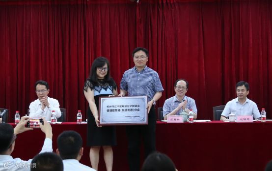 赵欣浩部长为知联会钱塘智慧城(九堡街道)分会授牌。