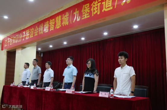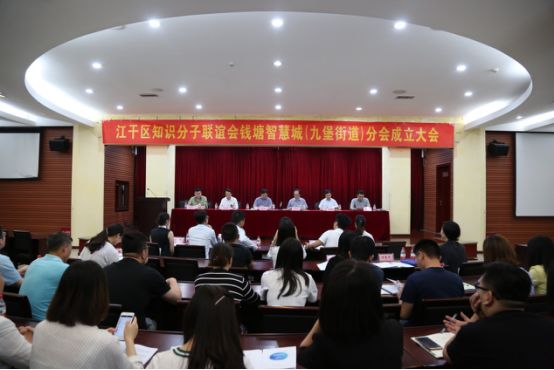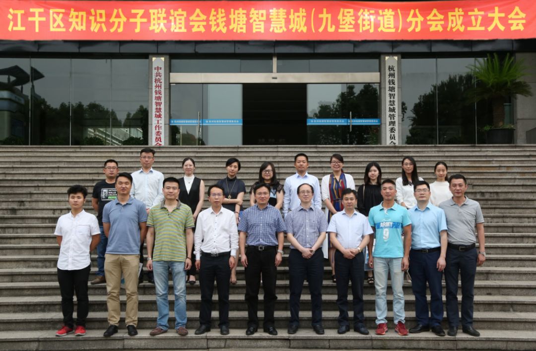 2018年6月5日下午,江干区知识分子联谊会钱塘智慧城(九堡街道)分会成立大会在智慧城管委会一楼报告厅举行。区委常委、统战部长赵欣浩,钱塘智慧城党工委书记、管委会主任,九堡街道党工委书记,九乔国际商贸城建设指挥部办公室主任陈柏林,钱塘智慧城党工委副书记刘继明,区委统战部副部长、民宗局局长万志勇,钱塘智慧城党工委委员、党政办主任方宇明,区委统战部副部长、民宗局副局长邱发贵,区知联会会长韩新宇出席会议。会议由九堡街道党工委委员吴达志主持。