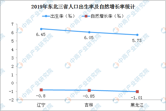 2019年东北三省常住人口累计减少42.73万人,比2018年增加4.16万人;辽宁、吉林、黑龙江常住人口分别同比减少7.6万、13.33万、21.8万,人口自然增长率分别为-0.80‰、-085‰、-1.01‰,而当年国内人口自然增长率为3.34‰。