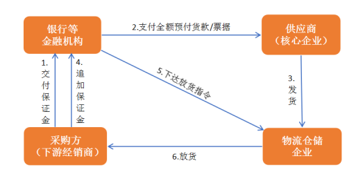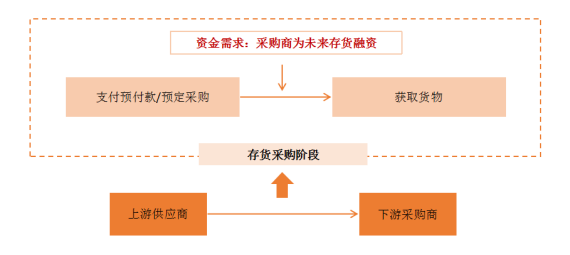预付款融资。预付款融资是对应于存货采购阶段的供应链金融业务模式,是建立在真实贸易背景的基础上对“未来存货”的融资。