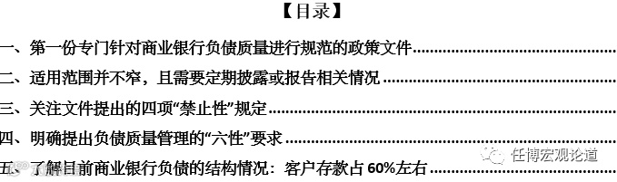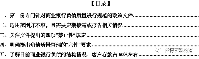 (一)这既是第一份专门针对商业银行负债质量进行规范的政策文件,同时也是对流动性管理办法、大额风险管理办法、互联网存款、同业业务等现有规章制度的一次系统梳理和总结,更全面。