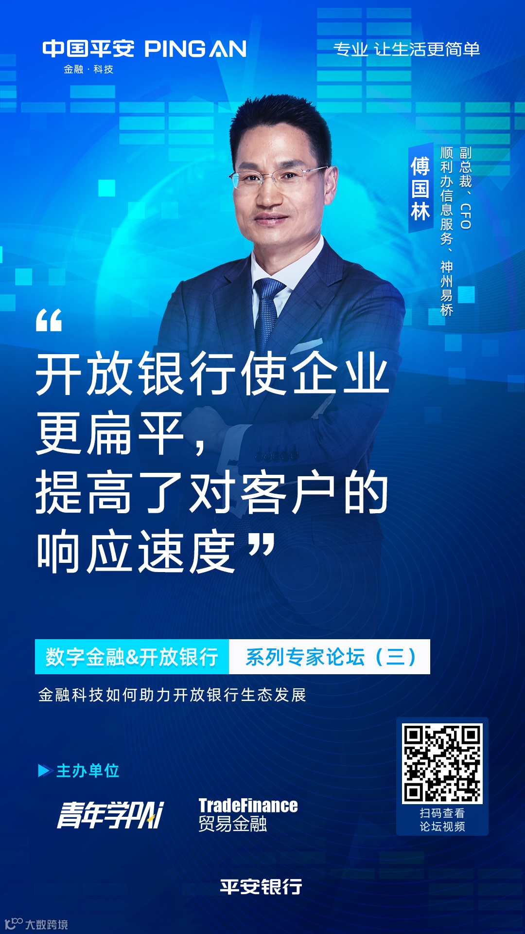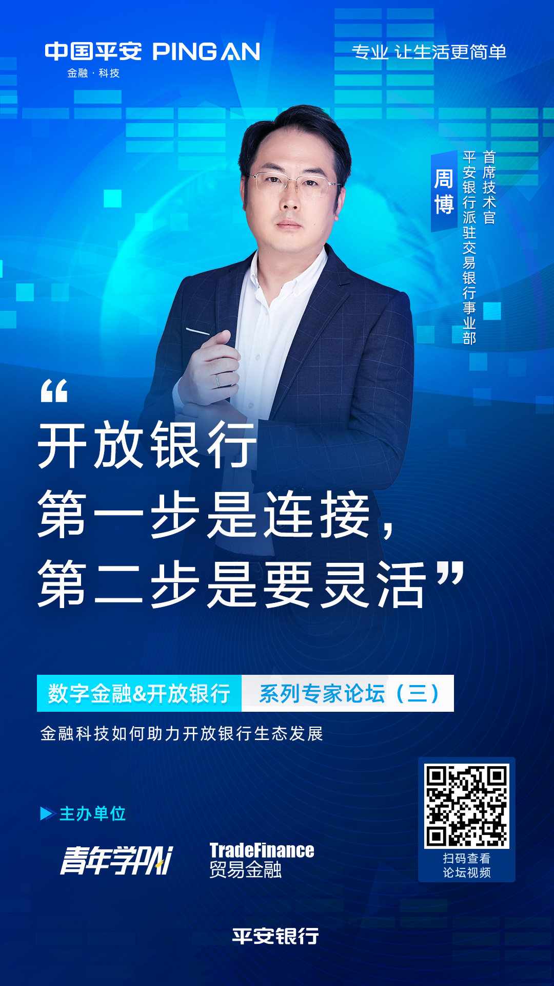 1月15日,平安银行“青年学PAi”与《贸易金融》杂志共同举办了开放银行系列专家论坛。会上,中国银行业协会研究部主任李健,顺利办信息服务、神州易桥副总裁/CFO傅国林,阿里集团场景金融事业部高级业务发展专家张宇,平安银行派驻交易银行事业部科技团队首席技术官周博,以“金融科技如何助力开放银行生态发展”为议题,从监管治理、转型实践、生态共建等方面,共同探讨开放银行、开放金融的发展愿景。