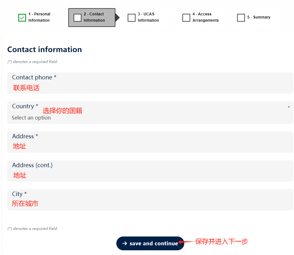 填写个人信息,注意这里填写的信息要和UCAS保持一致。