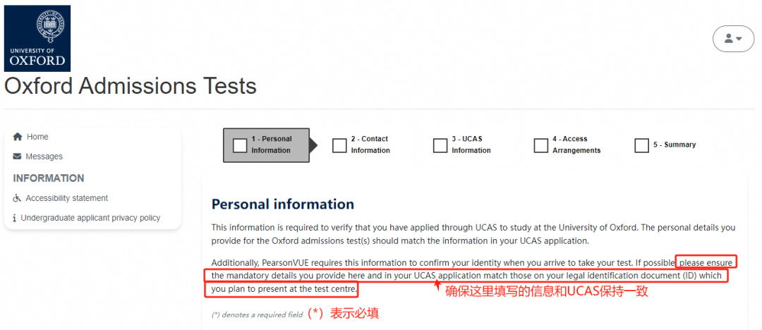 注意,你接下来输入的信息要和身份信息(如护照)保持一致,提前准备好你的UCAS ID(如果没有需要先在UCAS注册账号获取)。
