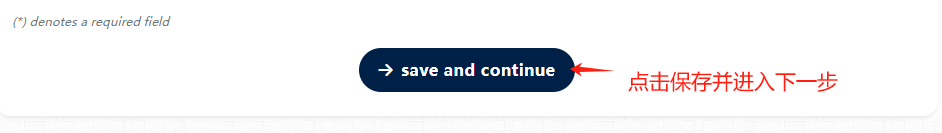 完成并检查后勾选同意,然后点击【save and continue】跳转到下一步。