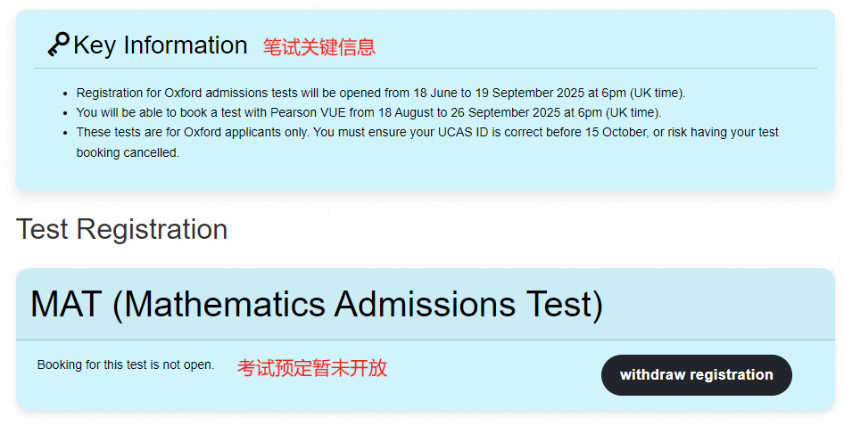 牛津入学考试的报名系统目前已经开放注册,结束时间在2025年的9月19日下午6点(英国时间)前。
