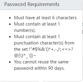 必须包含至少1个来自以下集合的标点符号!"#$%&'()*+,-./;:<=>?@\^ {}~