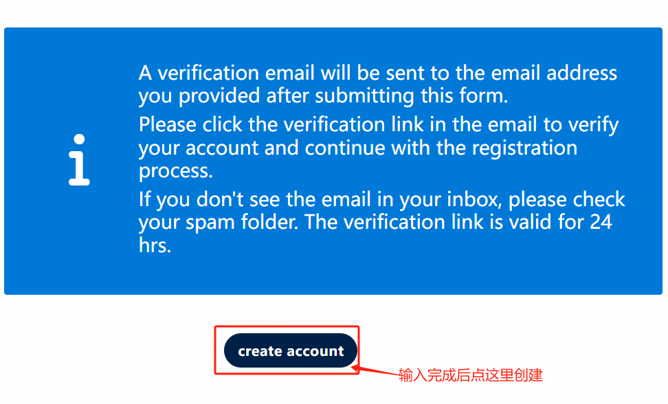 根据上图输入你的基本信息,完成后点击【create account】创建账号。