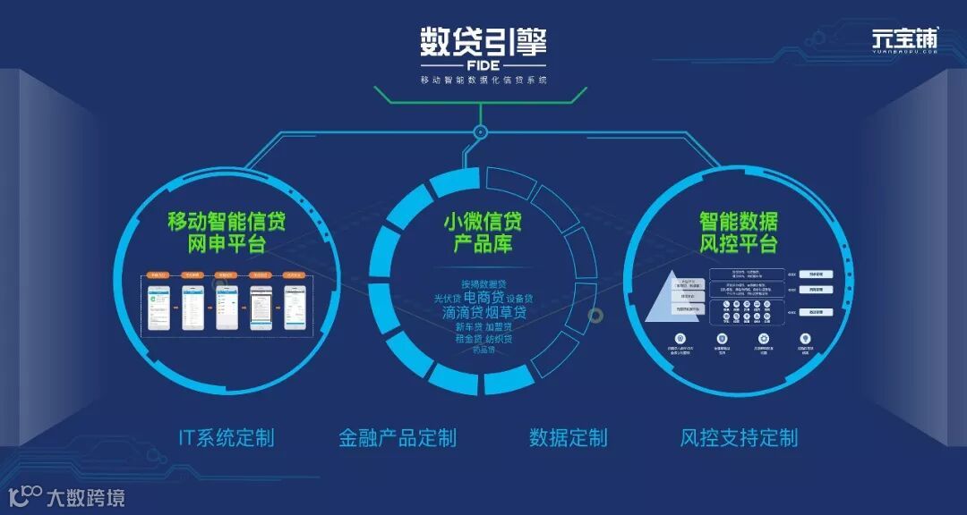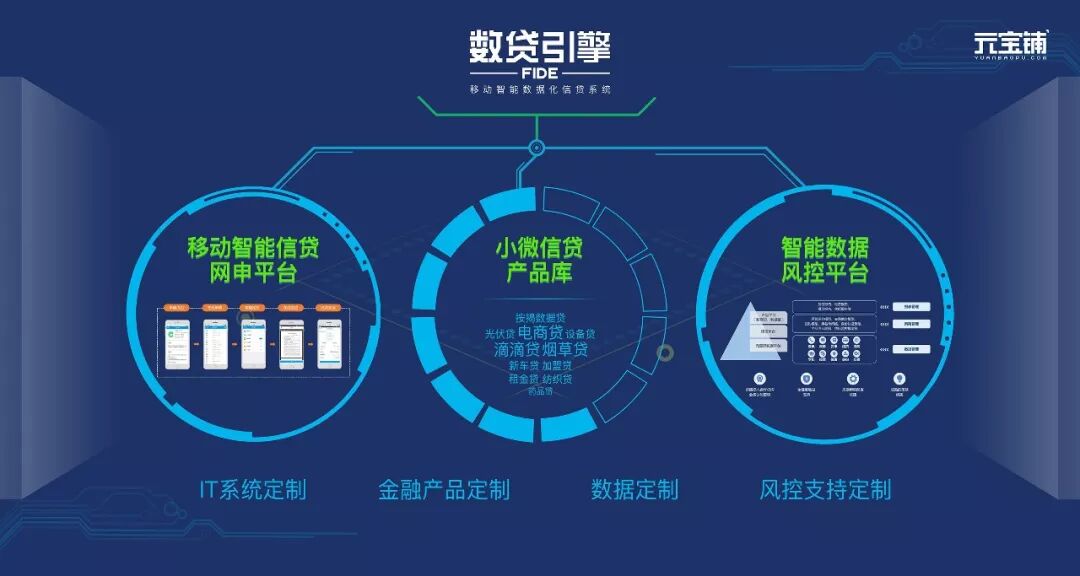 据悉,元宝铺旗下数贷引擎(FIDE)是国内首款移动智能数据化信贷系统,它集移动智能信贷网申平台、智能数据风控平台、小微信贷产品库为一体,运用数据和技术手段为金融机构提供高效的信贷基础设施,从贷前营销风控、贷中管理、贷后预警为金融机构提供在线化、自动化、定制化的全业务周期的数据化信贷解决方案。