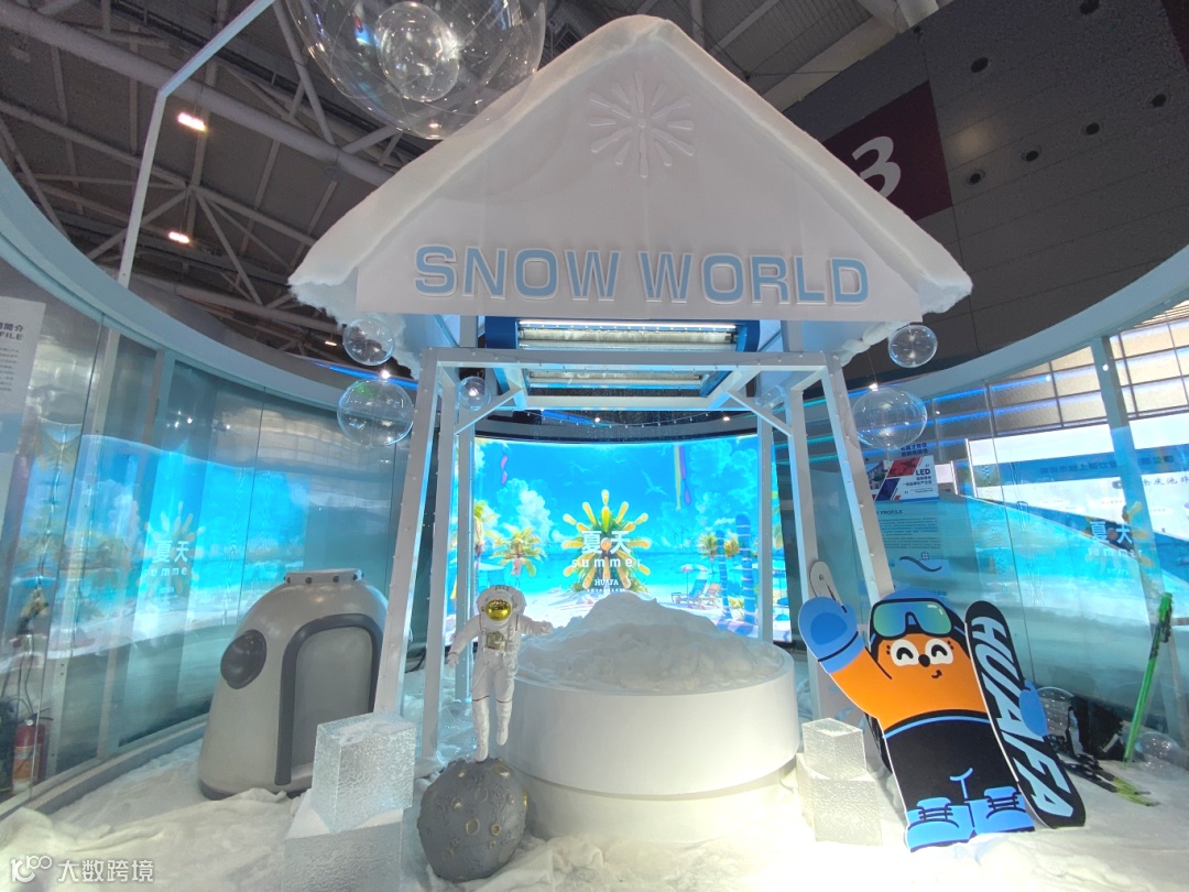 本届宝安展馆以前海冰雪世界为主要展示对象,展馆外立面采用冰纹亚克力设计,呈现晶莹剔透的冰砖效果。