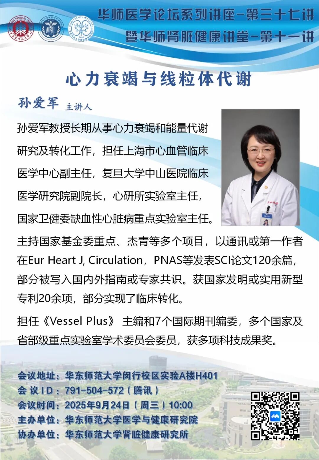 孙爱军教授长期从事心力衰竭和能量代谢研究及转化工作,担任上海市心血管临床医学中心副主任,复旦大学中山医院临床医学研究院副院长,心研所实验室主任国家卫健委缺血性心脏病重点实验室主任,