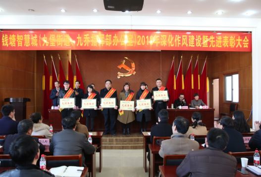 为表彰先进、树立典型、激励进取,进一步激发各党组织和广大党员在实践中干事创业、勇争一流的热情,为全面落实区委、区政府“拥江发展”“三化融合”战略,全力打造“智慧钱塘、幸福九堡”再鼓干劲、再立新功,2018年2月26日下午,钱塘智慧城管委会(九堡街道、九乔国际商贸城建设指挥部办公室)召开2018年深化作风建设暨先进表彰大会。