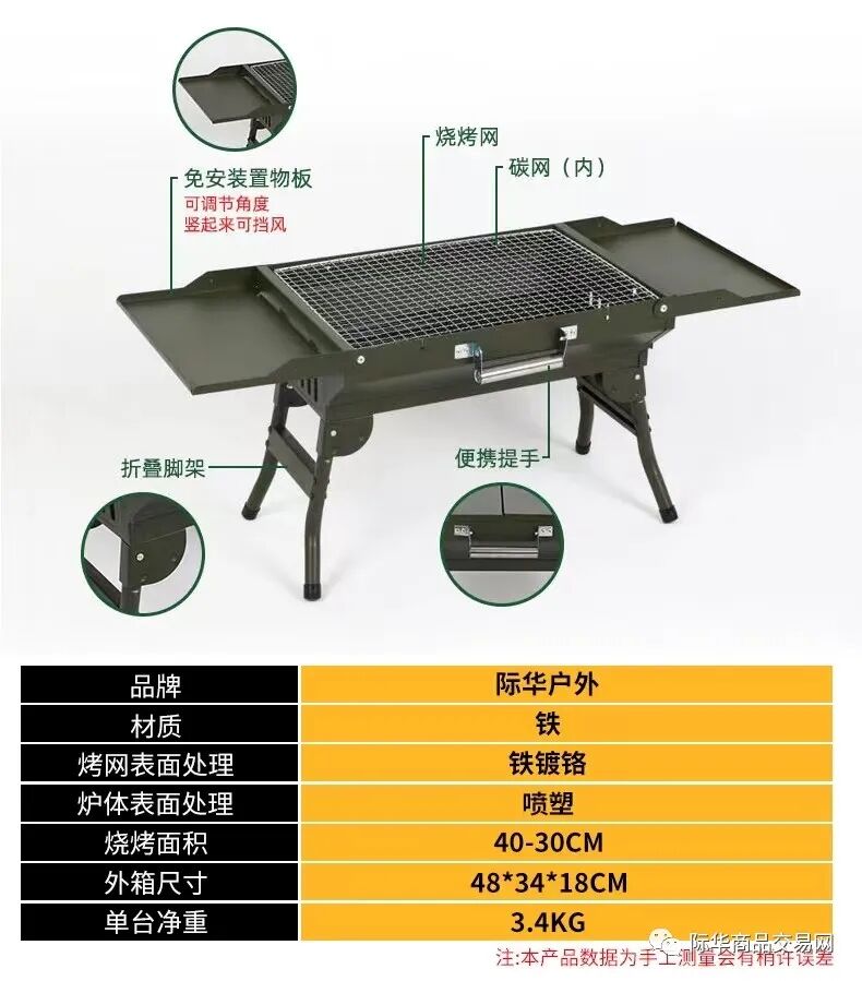 际约华品 夏季精品 — 际华户外烧烤炉子可折叠便携式烧烤架