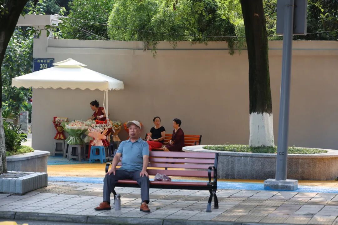 彭州街头悠闲休憩的市民 陈垚迅/摄