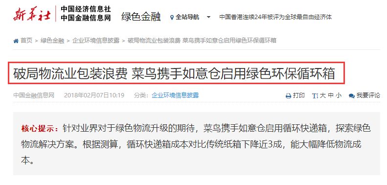 这是由菜鸟携手如意仓(全称网赢如意仓供应链股份有限公司)共同开启的绿色环保行动,该项目经过2个月的测试,首批启用的数千个循环快递箱将代替传统纸箱,助力阿里零售通,针对零售小店进行绿色配送。