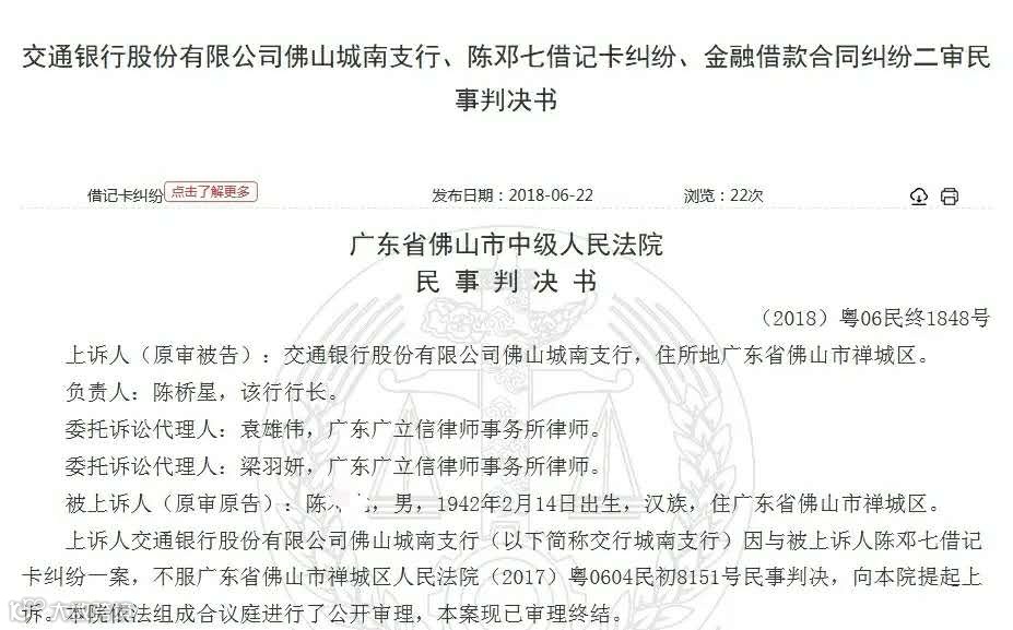 裁判文书网信息显示,城南支行一审后不服判决,后提出上诉,二审维持原判。二审后陈伯申请再审,最终至广东高院,广东高院最终亦维持一审原判。