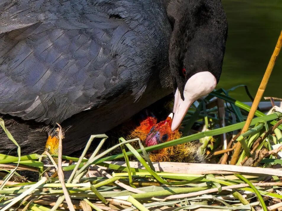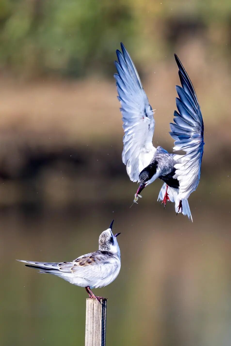 上海青浦淀山湖,须浮鸥正在投喂幼鸟。丁玉弟/摄(投稿作品)
