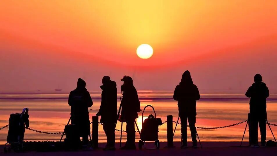 迎日出,盐城东台条子泥湿地。李东明/摄