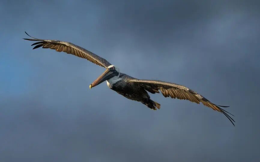 厄瓜多尔加拉帕戈斯群岛上,褐鹈鹕在变幻的光影中被定格。Sasan Amir/摄