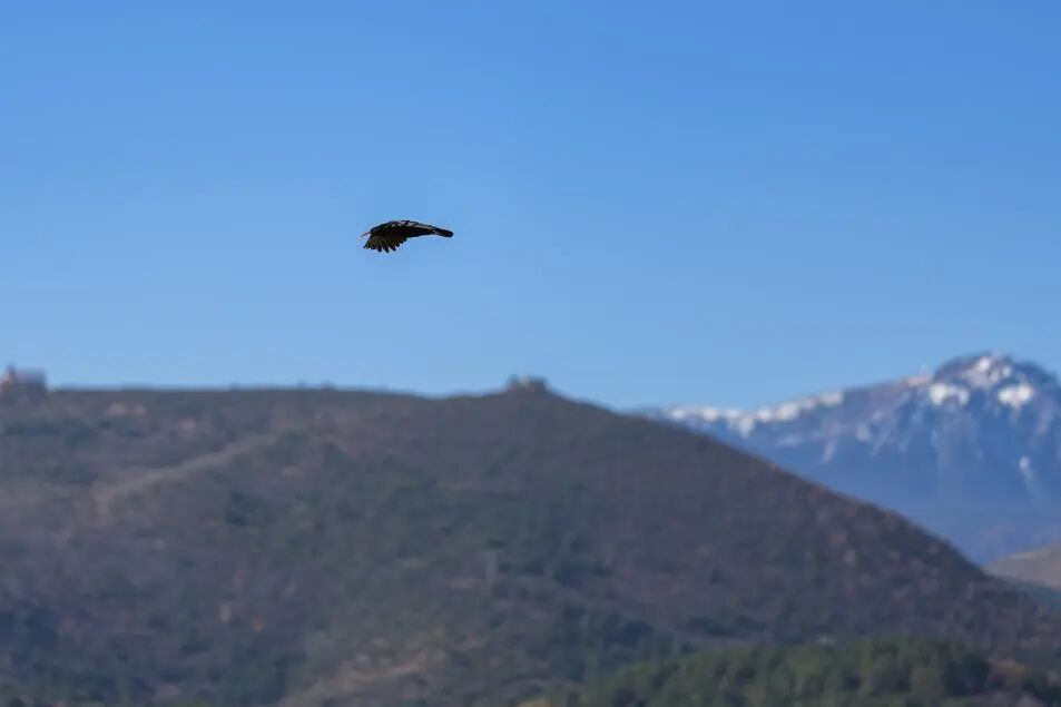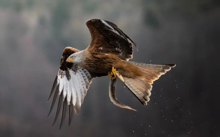 德国野外,衔着猎物的红鸢掠空而飞。Sasan Amir/摄