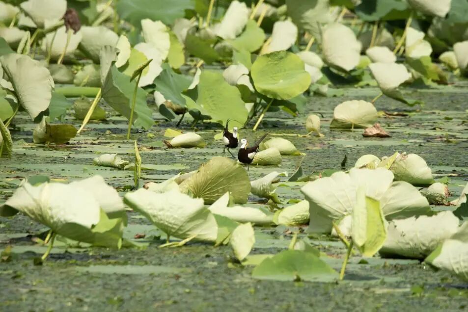 荷塘中的水凤凰,江苏昆山阳澄东湖省级湿地公园。孙鸿雷/摄(投稿作品)